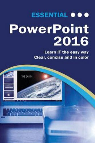Read Online Essential PowerPoint 2016 Computer Essentials PDF By Click Button. Essential PowerPoint 2016 Computer Essentials it’s easy to recommend a new book category such as Novel, journal, comic, magazin, ect. You see it and you just know that the designer is also an author and understands the challenges involved with having a good book. You can easy klick for detailing book and you can read it online, even you can download it